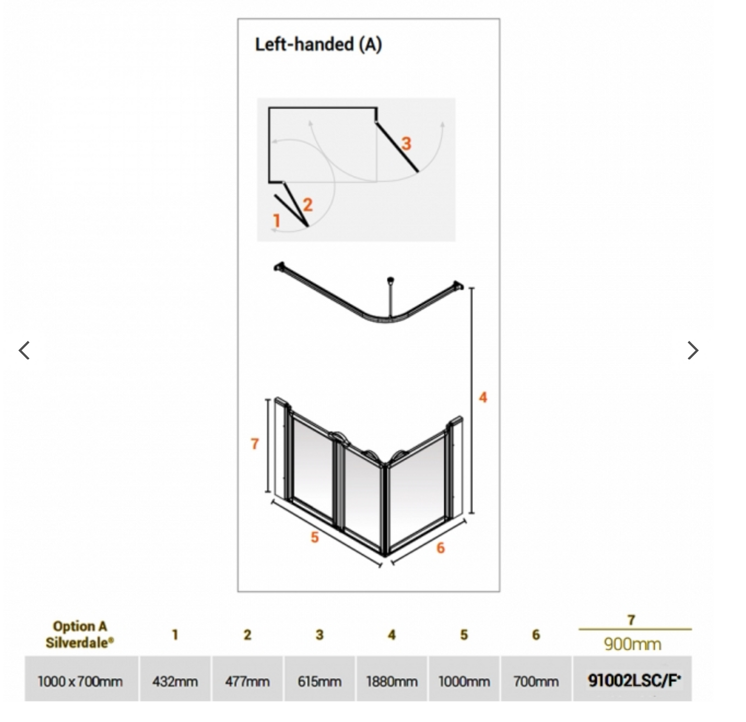 AKW Silverdale Option A Shower Screens 1000x700mm Left Hand - 900mm High - Frosted (91002LSF)
