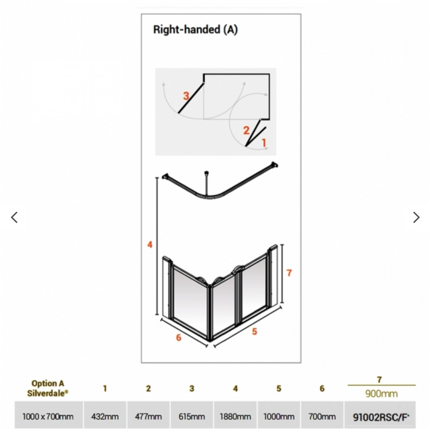 AKW Silverdale Option A Shower Screens 1000x700mm Right Hand - 900mm High - Frosted (91002RSF)