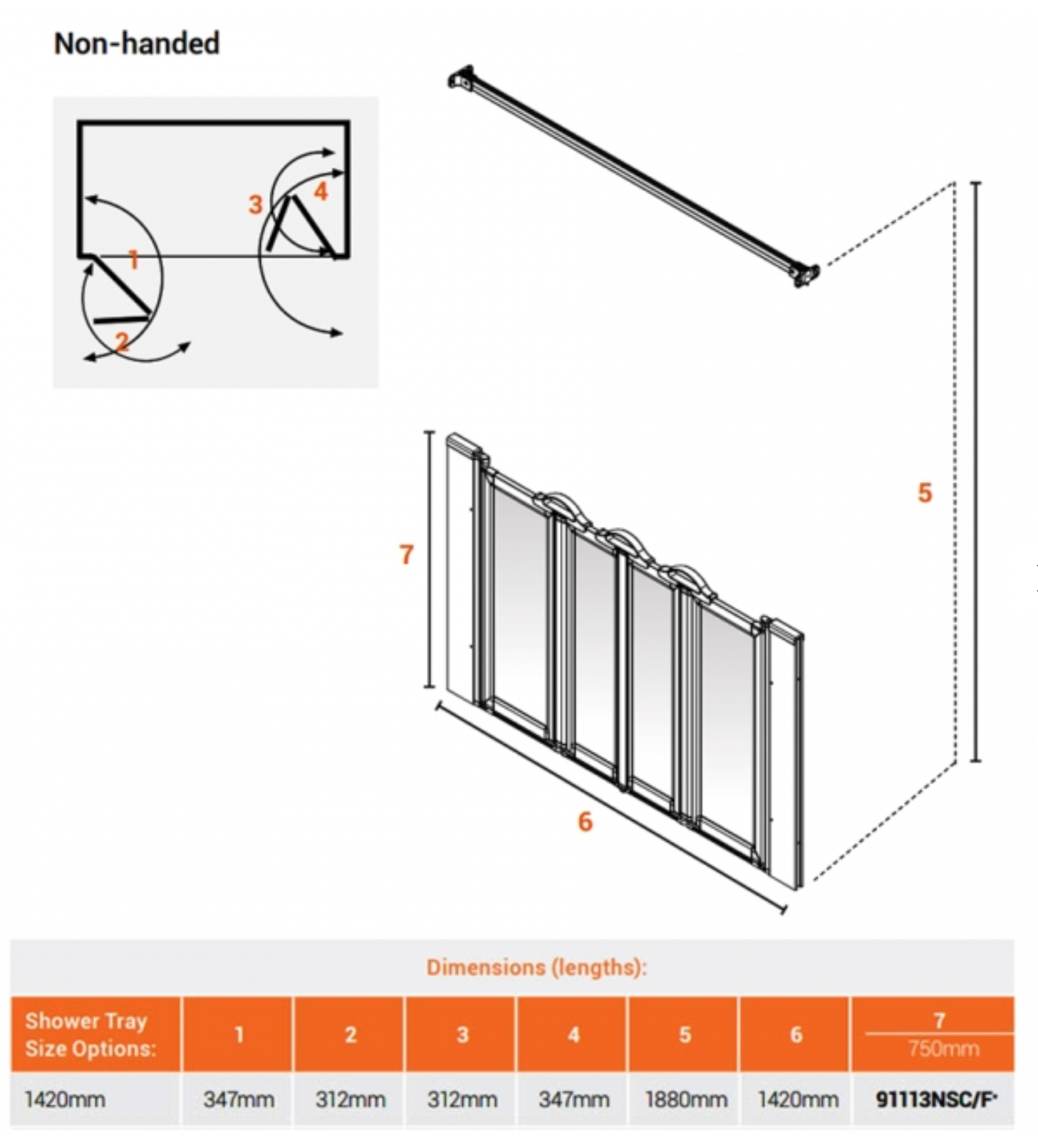 Achieve optimal carer access and privacy in standard bathrooms with the AKW Silverdale Option N Shower Screen, featuring frosted panels and a practical 750mm height. This 1420mm wide model (91113NSF) is tailored for care facilities or homes, offering shatterproof safety, smooth bi-fold operation, and effective splash containment.