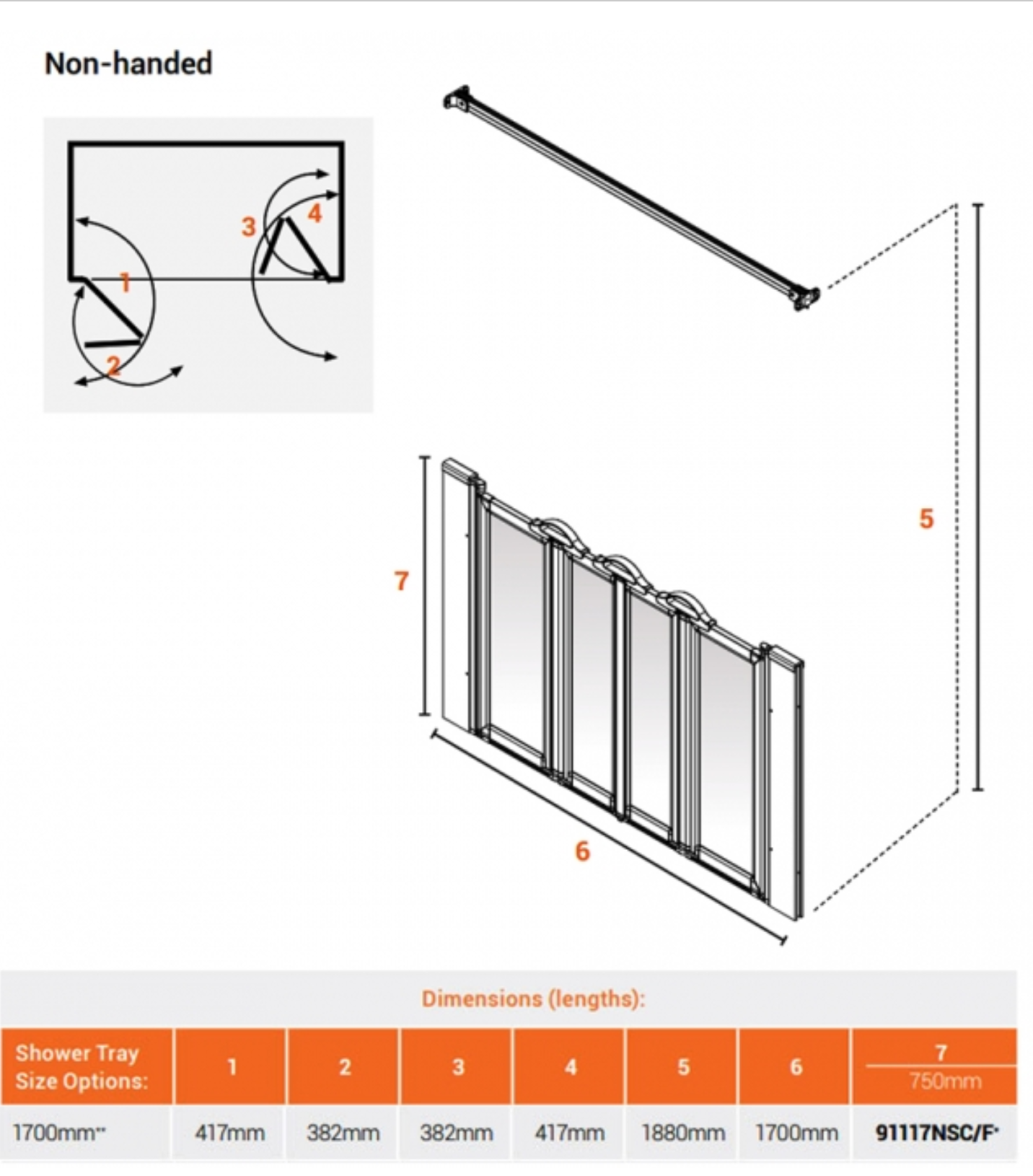 AKW Silverdale Option N Shower Screens 1700mm Wide x 750mm High - Frosted (91117NSF)
