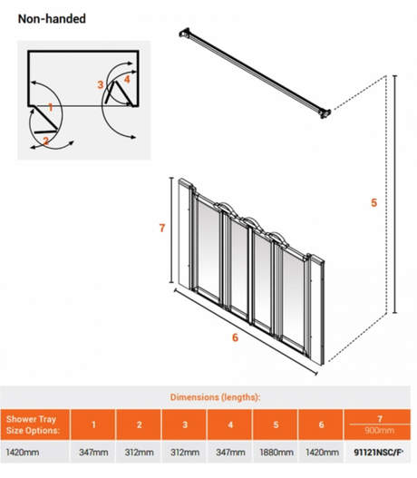 AKW Silverdale Option N Shower Screens 1420mm Wide x 900mm High - Clear (91121NSC)