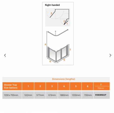 AKW Option A Shower Screens 1200x760mm Right Hand - 750mm High (91188R)