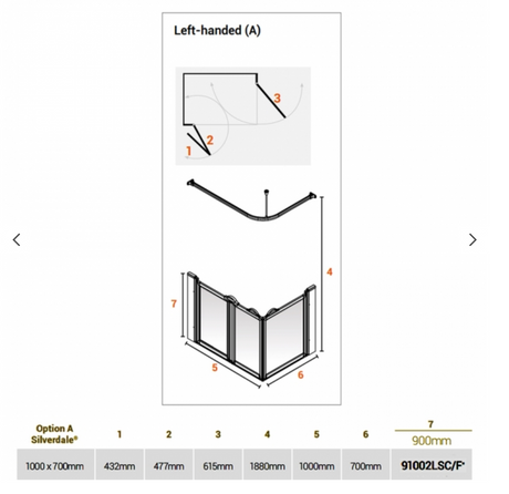 AKW Silverdale Option A Shower Screens 1000x700mm Left Hand - 900mm High - Clear (91002LSC)