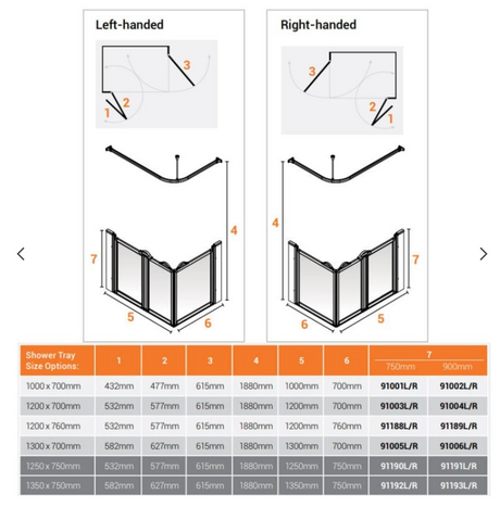 AKW Option A Shower Screens 1300x700mm Left Hand - 900mm High (91006L)