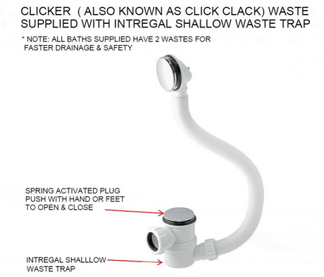 Kartell K-VIT Oblique P-Shaped Shower Bath 1700 x 850mm Left or Right Handed (BAT1600B)(BAT1610B)