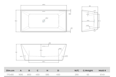 Kartell K-VIT Kruze Freestanding Bath 1700 x 800mm (FSB1700KR)