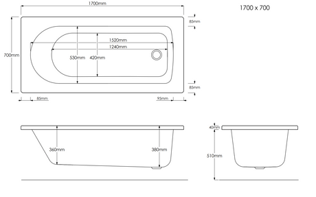 Kartell K-VIT Proton 1700 x 700 Contract Bath (BAT1700PRO)