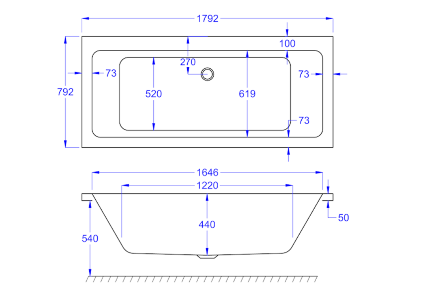 • 1800 x 800 mm Footprint – True space for two or one gloriously long soak