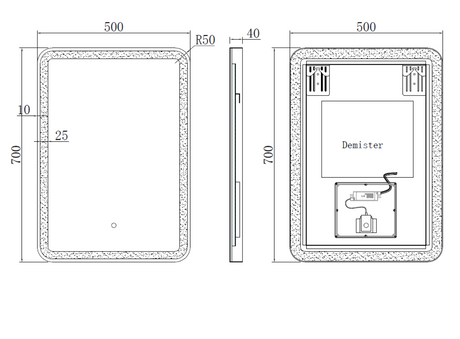 Kartell K-VIT Calcot 500x700mm Rounded Edges Back Lit Frameless Mirror-Chrome (CA5070)
