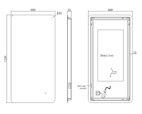 Kartell K-VIT Calcot 600x800mm Rounded Edges Back Lit Frameless Mirror-Chrome (CA6080)