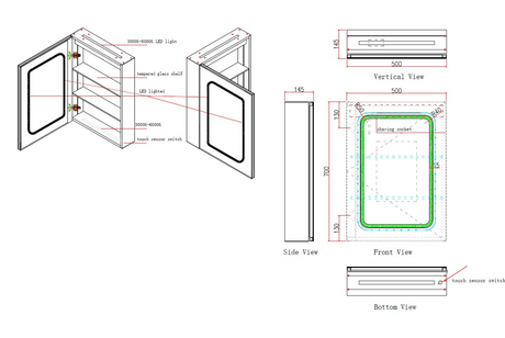 Kartell K-VIT Fine 500x700mm LED Mirror Cabinet-Chrome (FI5070MC)