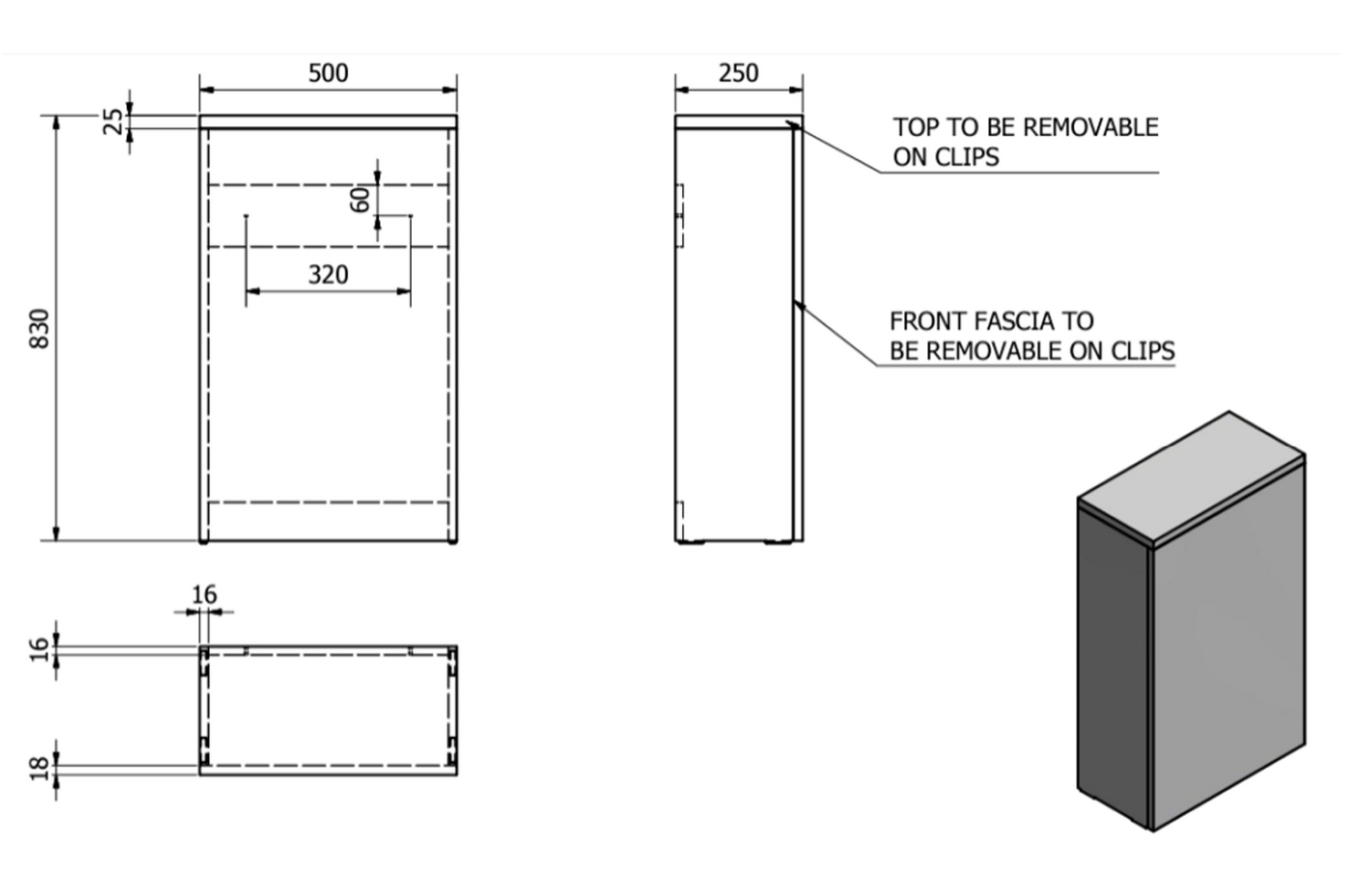 - Compact & Space-Saving – 505mm (W) x 830mm (H) x 250mm (D) – ideal for small bathrooms or en-suites.