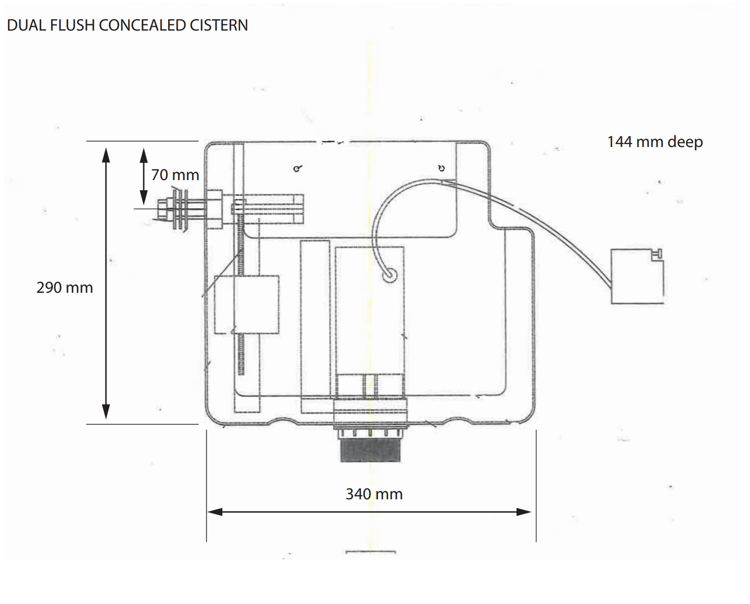 WRAS-approved | Front & top access Chrome push button included Water-efficient dual flush (3/6L) Dimensions: 295mm (H) x 340mm (W) Weight: 1.6kg 1-Year Guarantee
