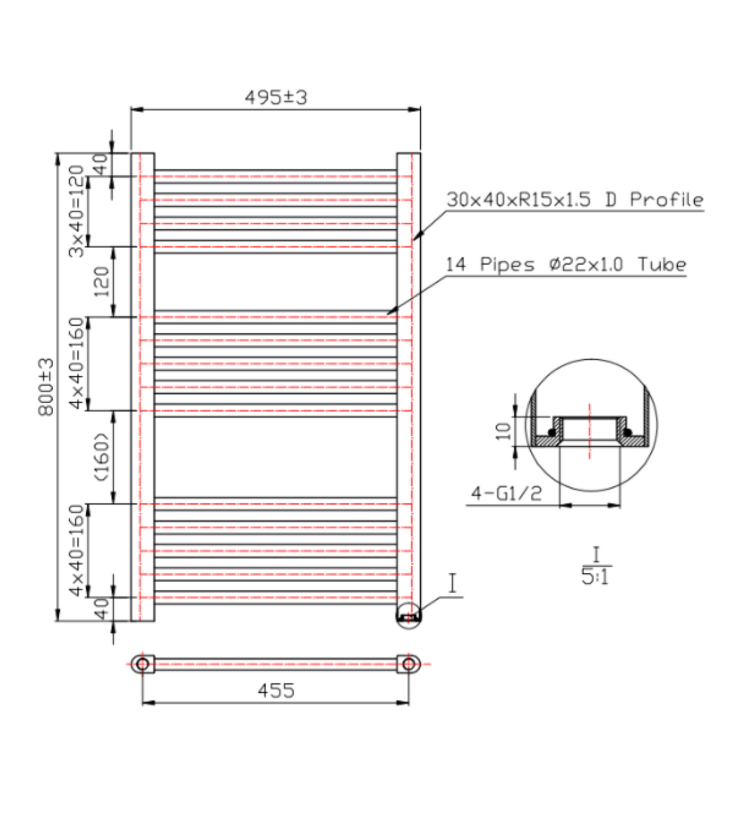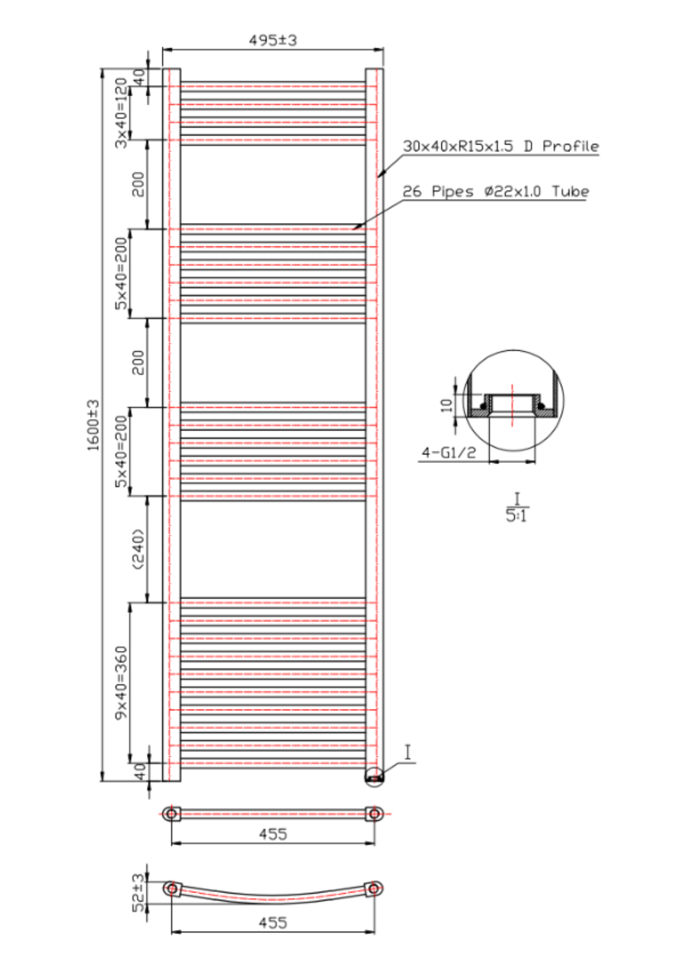 STR516W – 500mm (W) x 1600mm (H) – 3540 BTU
