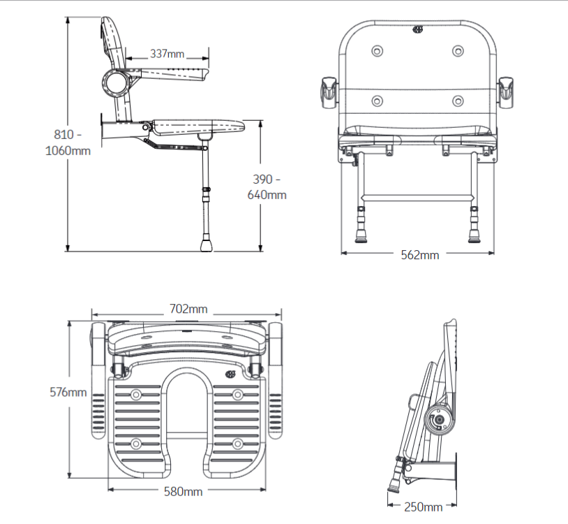 Enhance accessibility and hygiene with the AKW 4000 Series Extra Wide Horseshoe Wall Mounted Shower Seat – a premium, user-centred solution combining spacious comfort, innovative horseshoe design, and plush grey padding. Developed in consultation with occupational therapists, end users, and installers, this seat offers superior support for bariatric users and effortless personal care in any inclusive bathroom.