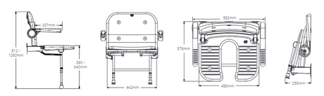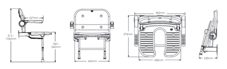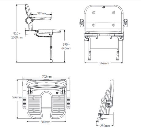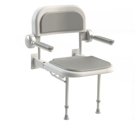 AKW 4000 Series Standard Horseshoe Wall Mounted Shower Seat with Back and Grey Padded Arms (04260)