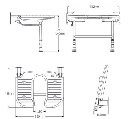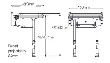 AKW 4000 Series Wall Mounted Extra Wide Fold up Moulded Padded Seat with Support Legs (04110P)