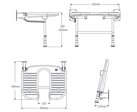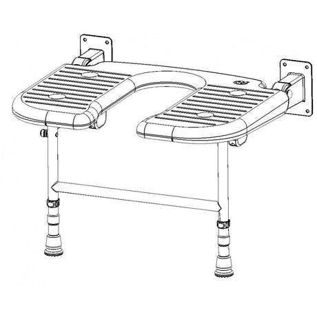 AKW 4000 Series Extra Wide Horseshoe Grey Padded Wall Mounted Shower Seat With Support Legs (04220P)
