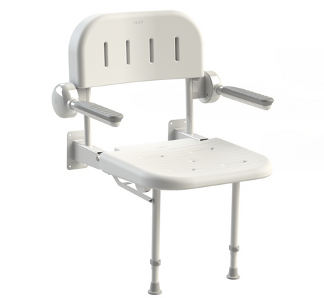AKW 4000 Series Extra Wide Wall Mounted Shower Seat with Back and Grey Padded Arms (04240)