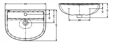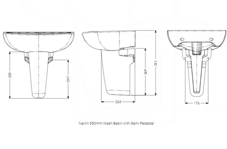 AKW Navlin Wash Basin 550mm 1 Tap Hole (23580)
