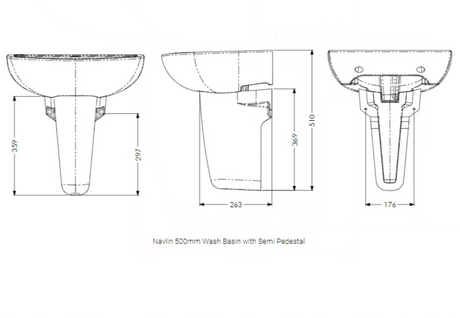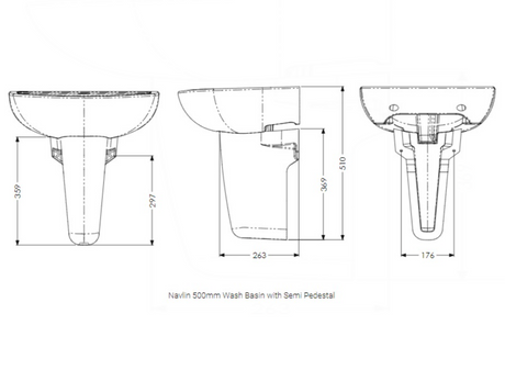 AKW Navlin Wash Basin 500mm 1 Tap Hole (23578)