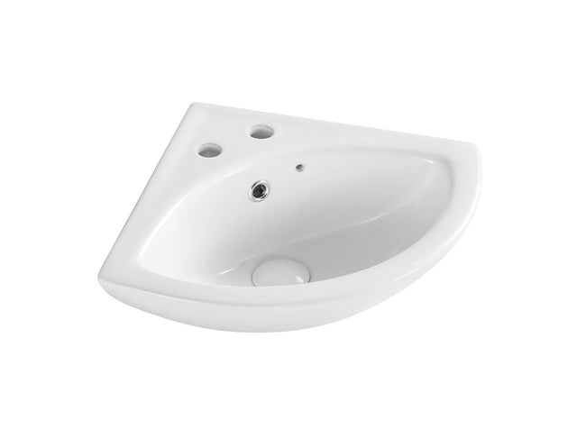 The Kartell K-VIT Proton Corner Two Tap Hole Basin is a sleek, space-saving basin ideal for modern cloakrooms or ensuites. Crafted from high-quality ceramic with a glossy white finish, this wall-mounted basin features a two-tap hole design and a generous washing area. Its corner fitment maximizes space while adding contemporary style.