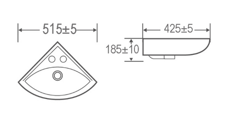 Kartell K-VIT Proton Corner Two Tap Hole Wash Basin- White Gloss (PROCRNBAS2)