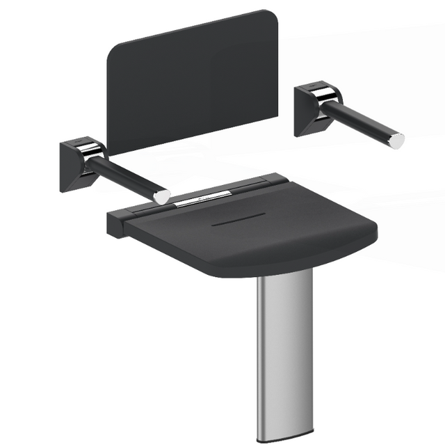 AKW Onyx Shower Seat With Back, Arms & Adjustable Leg - Black (02811BK-LS)