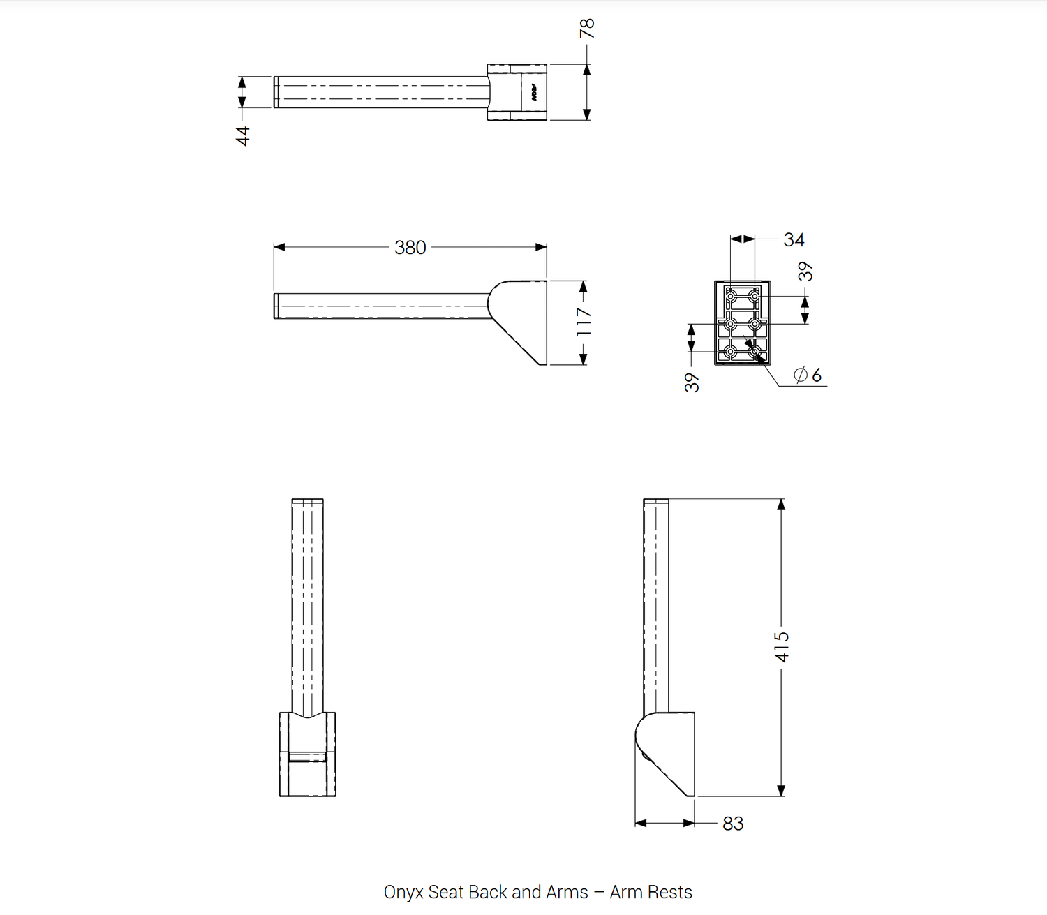 - Arm Rests: (L) 380mm x (W) 44mm