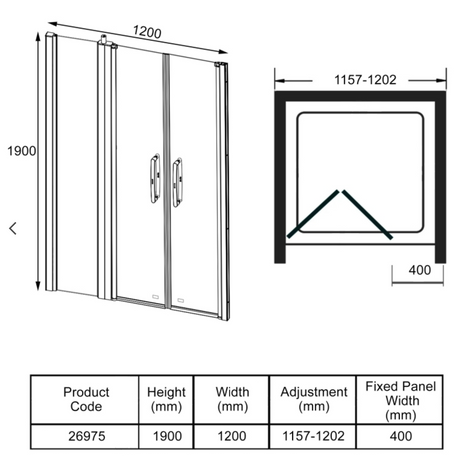 AKW Larenco Alcove Saloon Door Extended 1200mm (400+800) (26975)