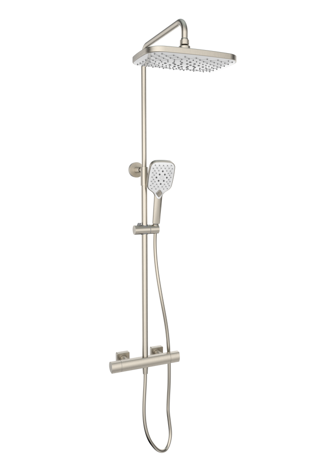 Upgrade your shower with this sleek brushed nickel system. A large overhead drench delivers a soothing rainfall, while the smooth-gliding handset offers targeted control—fully height-adjustable along a 1200 mm rail for all users.