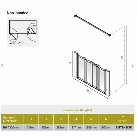 AKW Silverdale Option NW Shower Screens 1300mm Wide x 900mm High - Clear (91178NSC)