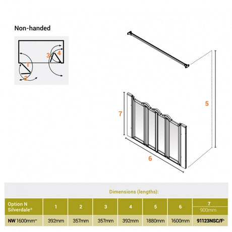AKW Silverdale Option NW Shower Screens 1600mm Wide x 900mm High - Clear (91123NSC)