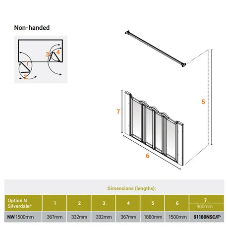 AKW Silverdale Option NW Shower Screens 1500mm Wide x 900mm High - Clear (91180NSC)