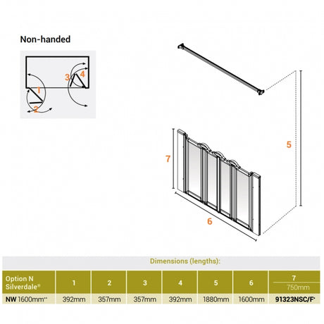 AKW Silverdale Option NW Shower Screens 1600mm Wide x 750mm High - Frosted (91323NSF)