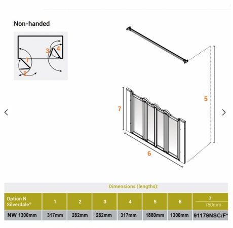 AKW Silverdale Option NW Shower Screens 1300mm Wide x 750mm High - Clear (91179NSC)