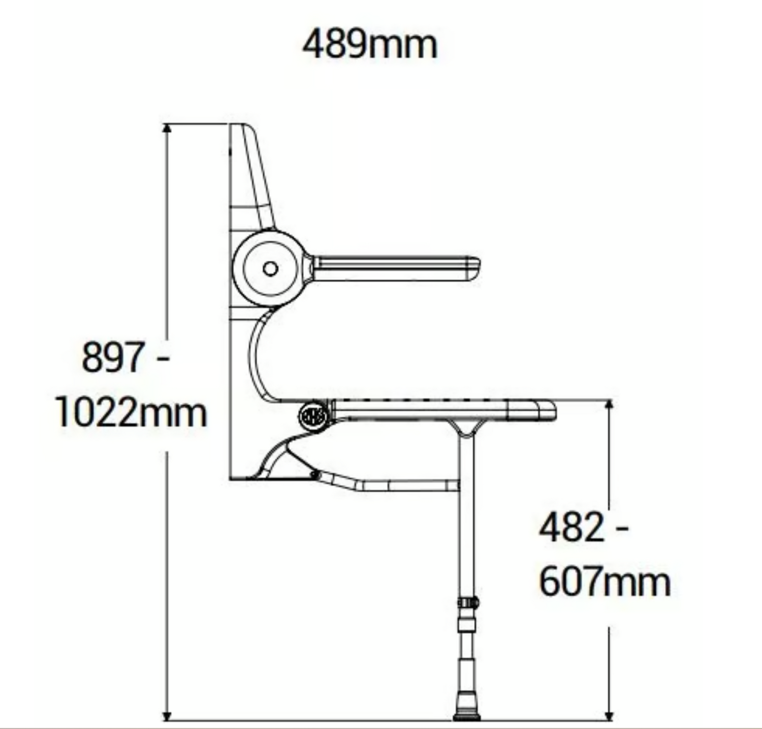 - Adjustable height from 482mm to 607mm – easily set during installation to suit individual user requirements