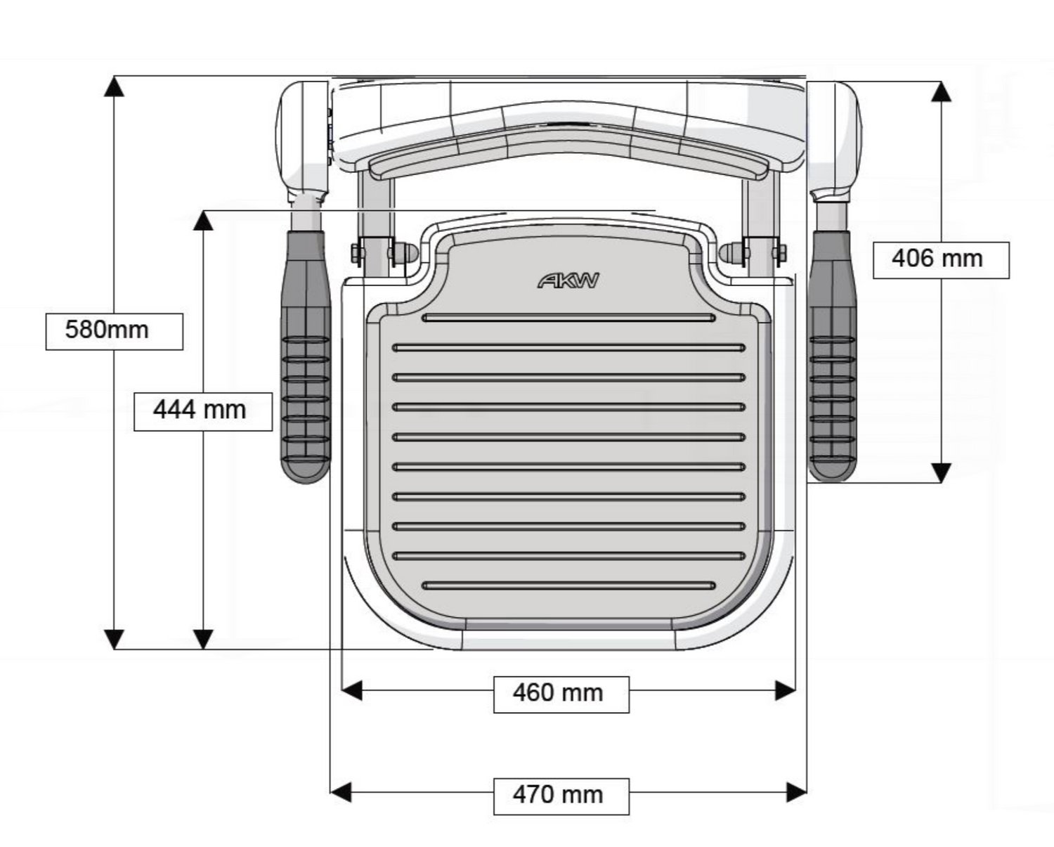 - 1 × AKW 3000 Series shower seat with grey padded backrest and arms