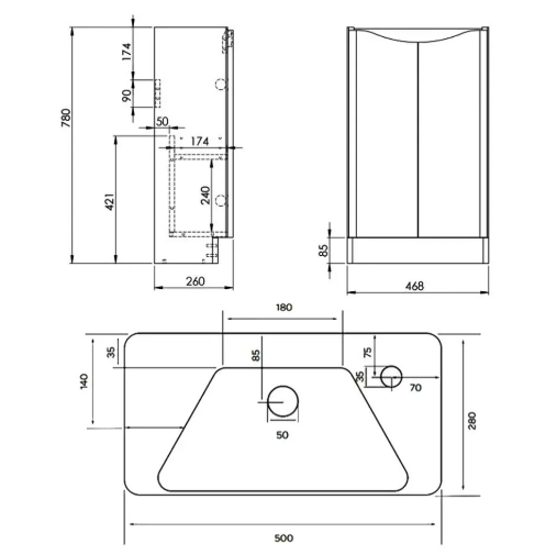 - Ultra-Compact Footprint – Just 500mm (W) x 840mm (H) x 290mm (D) – perfect for small cloakrooms or en-suites.