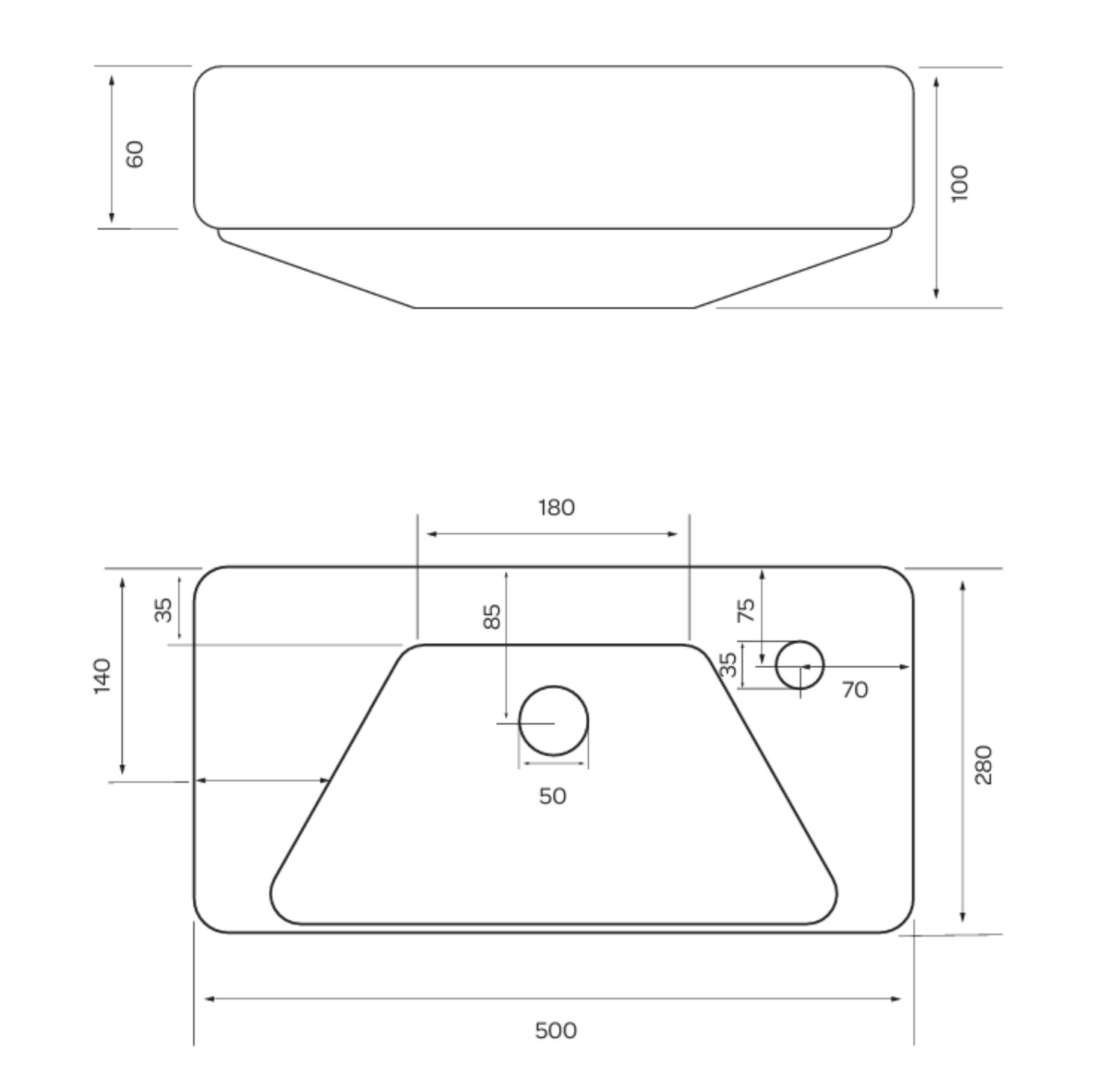 - Cayo 500mm Ceramic Basin – Crisp white, easy-clean, with 1 pre-drilled tap hole (tap sold separately).