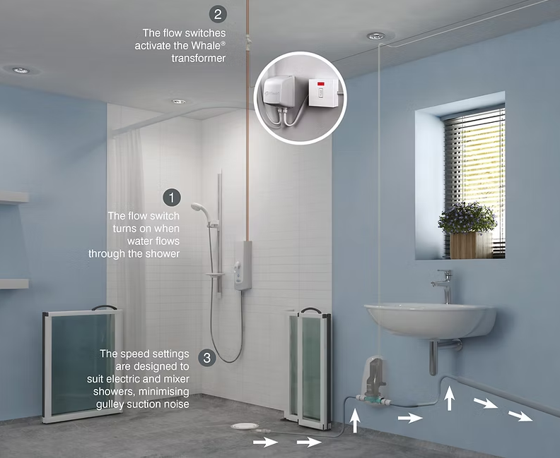12 Adjustable Speed Settings Customize performance for electric or mixer showers – reduces gulley noise while handling up to 3m draw, 0.5m lift, and 1m pump distance.